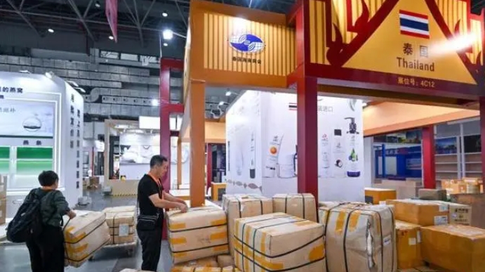 4月10日,第四屆中國(guó)國(guó)際消費(fèi)品博覽會(huì)參展物品陸續(xù)上架。圖為來自泰國(guó)的參展商整備參展商品。中新社記者 駱云飛 攝
