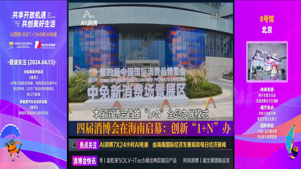 與往屆不同,第四屆消博會(huì)把握全球科技發(fā)展大勢,在國際傳播方面創(chuàng)新探索了打造“AI消博”的新方式,即:通過全方位、全流程、全周期的AI技術(shù),實(shí)時(shí)生產(chǎn)文字稿件和視頻內(nèi)容,進(jìn)行全網(wǎng)分發(fā),并運(yùn)用AI電視進(jìn)行線上線下同步直播。