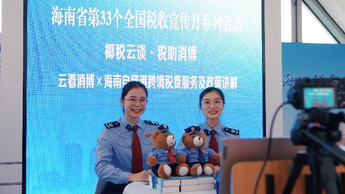 海南省稅務局舉辦“椰稅云談·稅助消博”政策解讀直播活動,稅務干部通過“海南稅務”抖音直播間在線講解海南自貿港跨境稅費服務及政策。海南省稅務局供圖