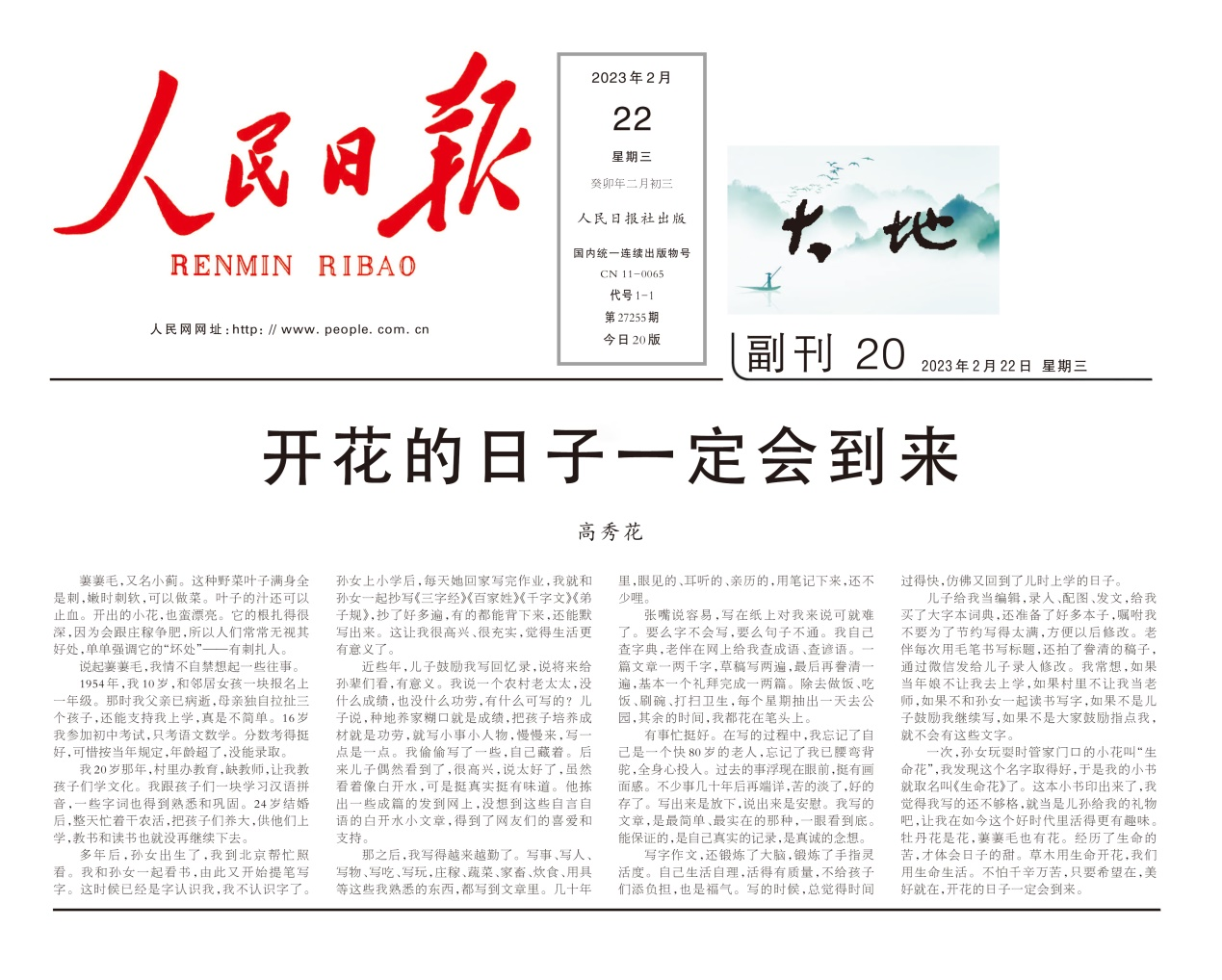 2023年2月22日,《人民日?qǐng)?bào)》刊發(fā)我母親的文章《開(kāi)花的日子一定會(huì)到來(lái)》。