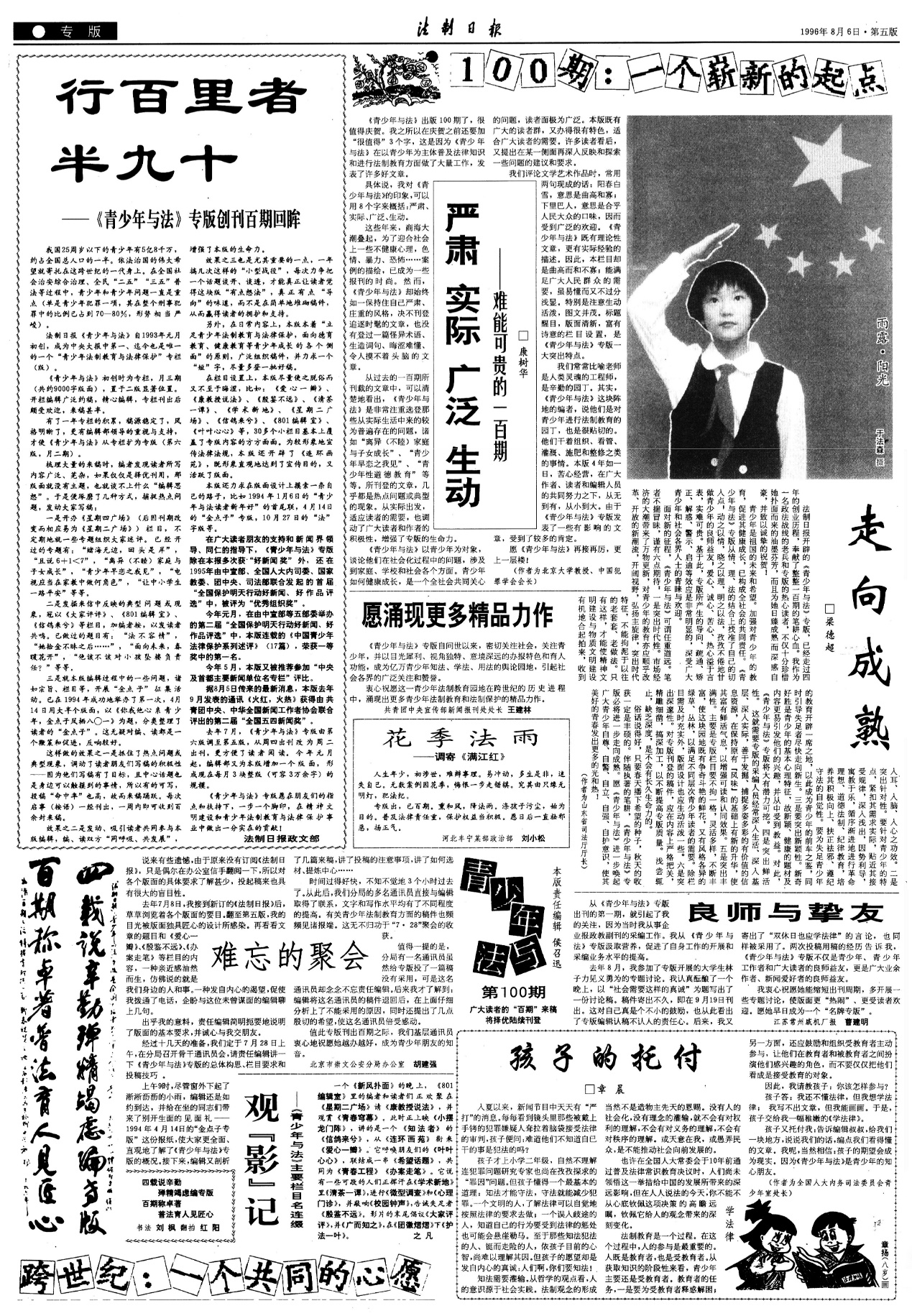 1993年,我參與編輯《法治日?qǐng)?bào)》“青少年與法”專欄(后改專版),到2001年初,共編輯200多期。注重動(dòng)員廣大專家、作者和讀者,共同講述依法保護(hù)青少年健康成長(zhǎng)的生動(dòng)故事,取得良好社會(huì)效果,獲得中宣部、全國(guó)人大內(nèi)司委、共青團(tuán)中央、國(guó)家教委、司法部評(píng)選的“全國(guó)保護(hù)明天好新聞好作品”優(yōu)秀組織獎(jiǎng)(所在政文部被評(píng)為“全國(guó)未成年人保護(hù)工作先進(jìn)集體”),又獲“中央和首都主要新聞單位名專欄”提名。撰寫的青少年法律保護(hù)述評(píng)(17篇)及《我們?yōu)槊魈斐兄Z 我們讓承諾結(jié)果》《志愿者情暖浪子心》《陽(yáng)光照耀明天》《以法思“凈”》《法律護(hù)孩子回家》等相關(guān)報(bào)道,多次刊于一版頭條,被央廣、央視等媒體摘播轉(zhuǎn)載,獲評(píng)“全國(guó)保護(hù)明天好新聞好作品”一等獎(jiǎng)6次、二等獎(jiǎng)3次,以及共青團(tuán)中央、中國(guó)記協(xié)評(píng)選的“五四新聞獎(jiǎng)”一等獎(jiǎng)1次、二等獎(jiǎng)3次,中央綜治委、中國(guó)記協(xié)評(píng)選的“全國(guó)社會(huì)治安綜合治理好新聞”一等獎(jiǎng)1次。