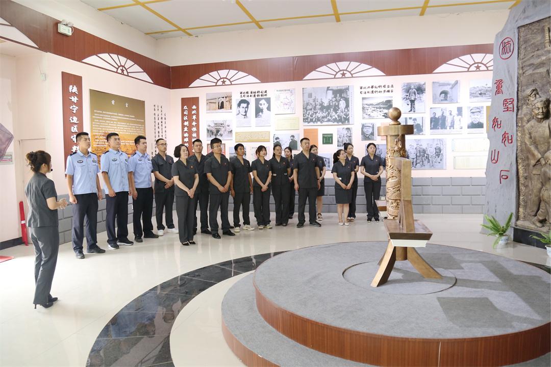 圖為延安市中級人民法院機關(guān)黨委組織黨員到陜甘寧邊區(qū)高等法院舊址,開展“學(xué)習(xí)馬錫五審判方式 傳承人民司法優(yōu)良傳統(tǒng)”主題黨日活動。 本報通訊員 劉涵雨 攝