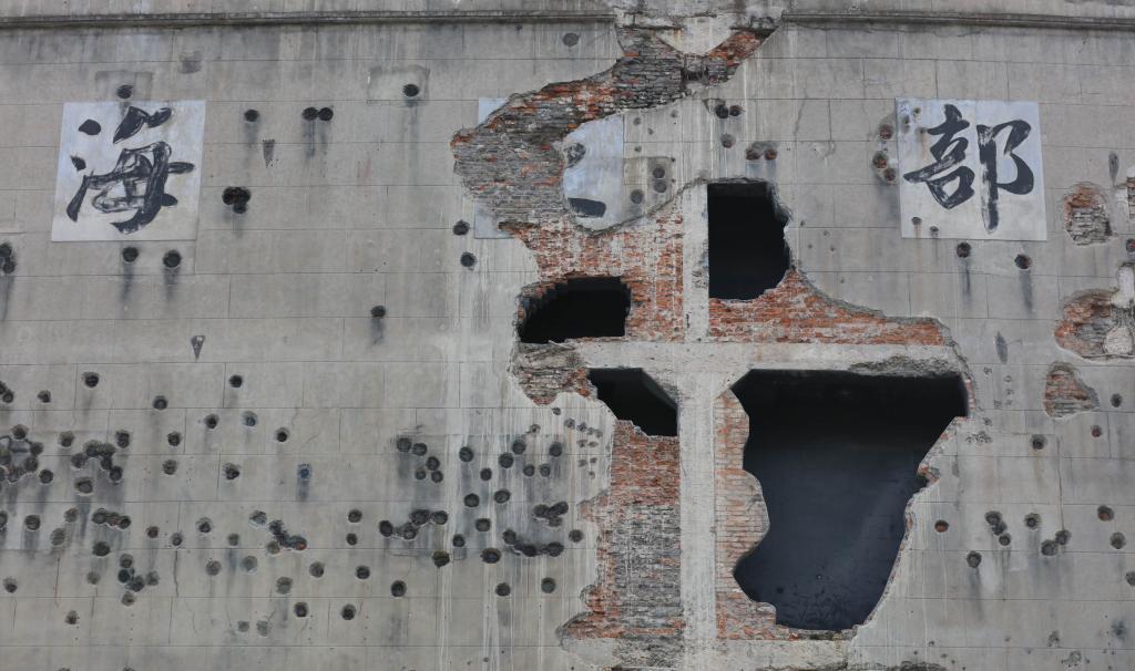 一面約1500平方米的墻,可以承受多少枚炮彈的轟擊?8個(gè)炮彈孔、420余個(gè)槍彈孔,這是還原后的四行倉(cāng)庫(kù)西墻。88年過(guò)去,這些孔洞仿佛仍在訴說(shuō)著山河血淚。