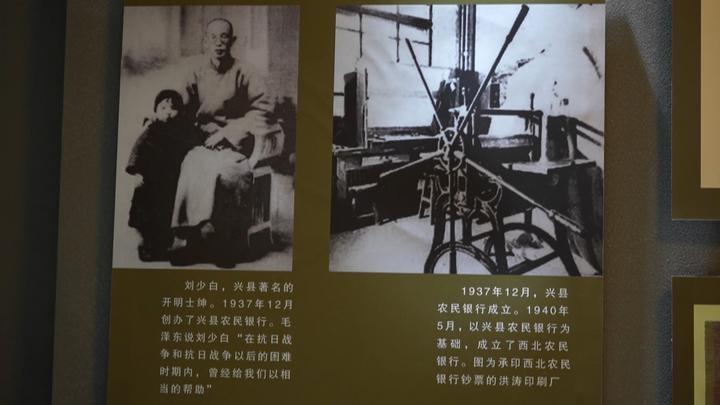 講解員張英告訴記者,為了更貼近百姓,與閻錫山的晉鈔區(qū)分開(kāi)來(lái),所以取名叫興縣農(nóng)民銀行?!霸冢ㄅd縣)農(nóng)民銀行的基礎(chǔ)上,我們又成立了西北農(nóng)民銀行。西北農(nóng)民銀行當(dāng)時(shí)的主要工作就是印鈔。我們看到的這個(gè)就是當(dāng)時(shí)建立的洪濤印刷廠,當(dāng)時(shí)洪濤印刷廠的工作也非常多,從1940年成立到1949年1月,一共印的鈔票價(jià)值是3.8億元。1940年5月10日,我們?cè)谂d縣孫家大院舉辦了開(kāi)業(yè)大禮,從此西北農(nóng)民銀行誕生,之后在1948年12月份,西北農(nóng)民銀行、華北銀行、北海銀行合并,組建了中國(guó)人民銀行,至此,西北農(nóng)民銀行完成了它的歷史使命。”她說(shuō)。