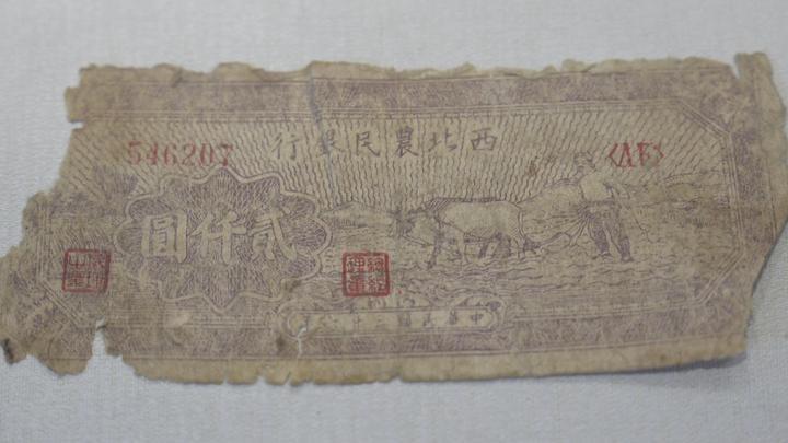 圖為西北農(nóng)民銀行發(fā)行的紙幣,面額為2000元。新華社記者 原勛 攝