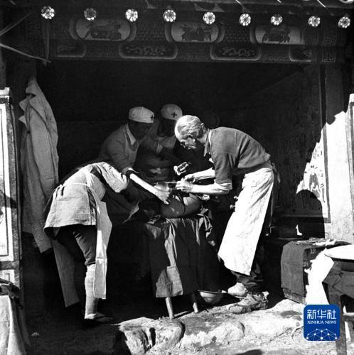 ??1939年,攝影家吳印咸隨“延安電影團”(八路軍總政治部電影團)到晉察冀采訪。同年底,日軍集中兵力對冀西抗日根據(jù)地發(fā)動冬季大掃蕩。在這期間,白求恩率隊救治傷員,把手術(shù)站設(shè)在孫家莊村邊的小廟里,吳印咸也正好跟隨其中。