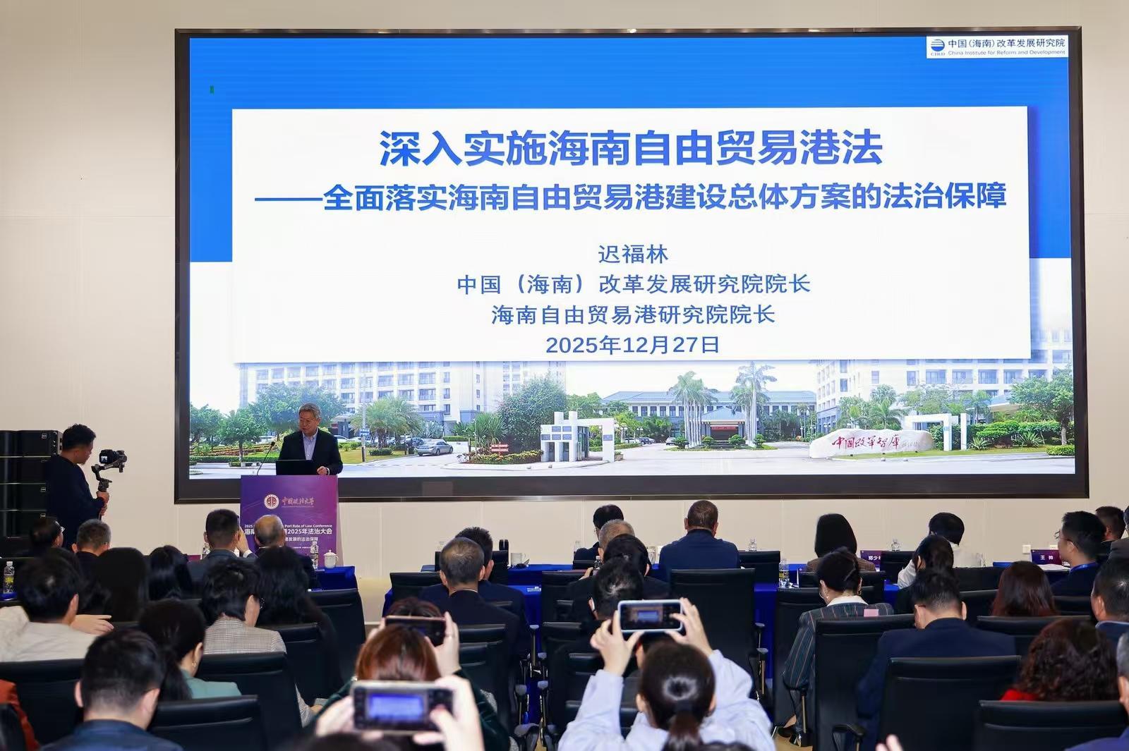 12月27日,海南自由貿(mào)易港2025年法治大會(huì)于??谡匍_。大會(huì)由中國(guó)政法大學(xué)、江東新區(qū)管理局主辦,中國(guó)政法大學(xué)海南自由貿(mào)易港法治研究院/海南國(guó)際學(xué)院、中國(guó)政法大學(xué)法律學(xué)院承辦。大會(huì)創(chuàng)新設(shè)立“專家五人談”環(huán)節(jié),中國(guó)(海南)改革發(fā)展研究院院長(zhǎng)、海南自由貿(mào)易港研究院院長(zhǎng)遲福林出席并發(fā)言。