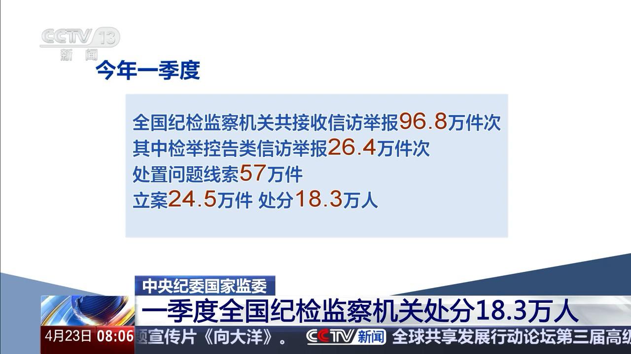 中央紀(jì)委國家監(jiān)委 一季度全國紀(jì)檢監(jiān)察機(jī)關(guān)處分18.3萬人