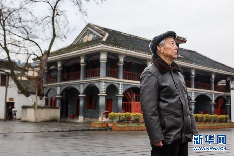 1月27日,83歲的遵義會議紀念館原副館長田興詠在遵義會議會址前口述歷史。新華社記者 歐東衢 攝