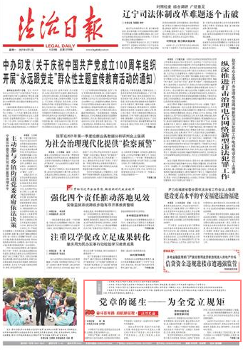 中國共產(chǎn)黨百年華誕之際,法治日報4月12日起推出“奮斗百年路 啟航新征程·法治足跡”系列報道,追尋中國法治足跡,以激勵人們投身法治中國建設(shè)偉大工程,開辟法治中國新紀元。敬請關(guān)注。