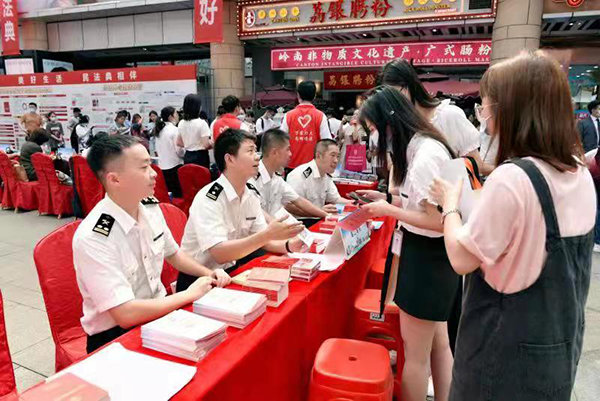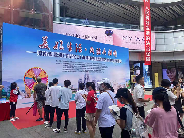 5月28日上午,海南省普治辦、省司法廳聯(lián)合海口市普治辦、海口市司法局、海南電網(wǎng)有限責(zé)任公司、??诤jP(guān)、省水務(wù)廳、省律師協(xié)會(huì)、省消防救援總隊(duì)在??谑腥赵聫V場(chǎng)開展民法典集中普法宣傳活動(dòng)。27家省直和??谑兄眴挝辉诨顒?dòng)現(xiàn)場(chǎng)擺放民法典展板、設(shè)置法律服務(wù)咨詢臺(tái),為群眾提供法律咨詢服務(wù),免費(fèi)發(fā)放宣傳資料。當(dāng)天,全省18個(gè)市縣還同步組織開展開展民法典集中普法宣傳和法律咨詢活動(dòng)。