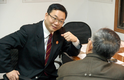 時(shí)任上海市長(zhǎng)寧區(qū)人民法院院長(zhǎng)的鄒碧華在接待起訴當(dāng)事人。(資料照片)