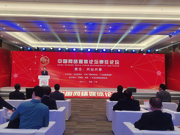 11月24日,2021中國網(wǎng)絡(luò)媒體論壇責(zé)任論壇在廣東省廣州市廣交會展館舉行,主題為“責(zé)任:共治共享”。中央網(wǎng)信辦副主任、國家網(wǎng)信辦副主任牛一兵,光明日報(bào)社總編輯王慧敏,廣東省委常委、宣傳部部長陳建文等領(lǐng)導(dǎo)和嘉賓出席論壇。