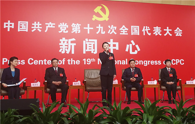 在黨的十九大政法代表媒體集體采訪現(xiàn)場(chǎng)接受采訪