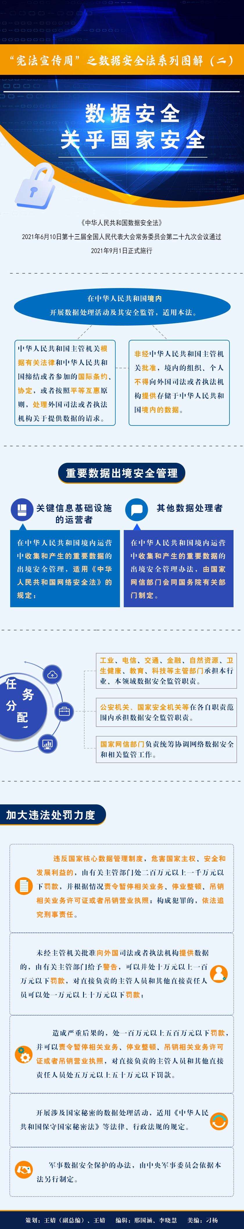 值此第四個(gè)“憲法宣傳周”之際,法治網(wǎng)將為您解讀今年9月1日起施行的《中華人民共和國(guó)數(shù)據(jù)安全法》——這部法律的亮點(diǎn)是什么?它是如何支持促進(jìn)數(shù)據(jù)安全與發(fā)展的?它又彰顯了哪些數(shù)據(jù)“溫度”?這一系列問(wèn)題,都會(huì)在法治網(wǎng)《數(shù)據(jù)安全法圖解(系列)》中找到答案。