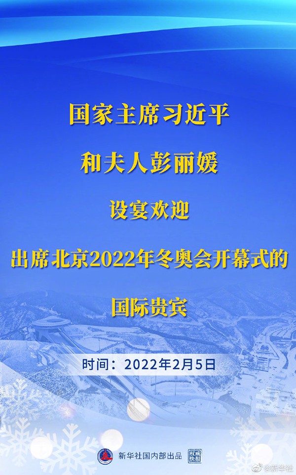 習(xí)近平和彭麗媛設(shè)宴歡迎出席北京2022年冬奧會(huì)開幕式的國際貴賓