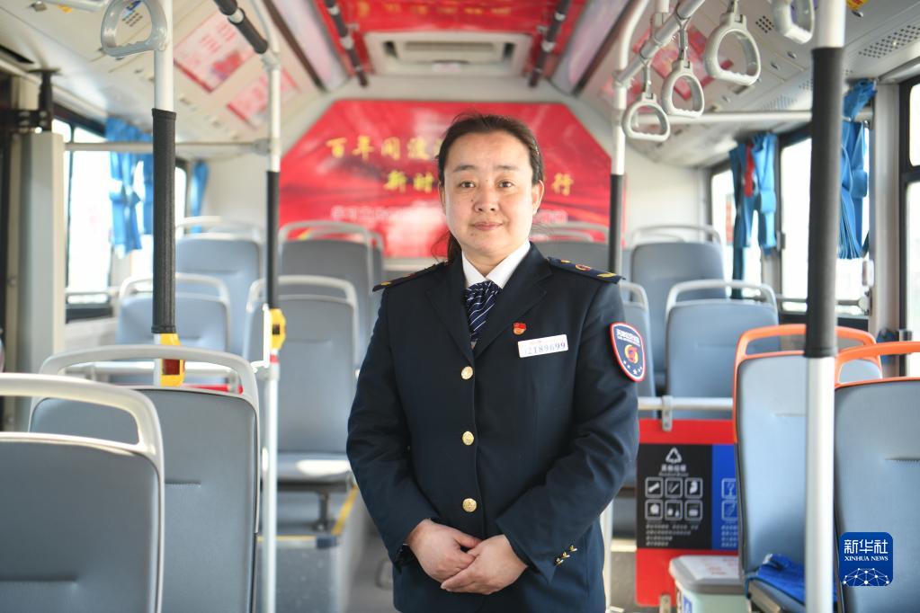 2月24日,這是在8路公交車(chē)內(nèi)拍攝的王艷。新華社記者 孫凡越 攝