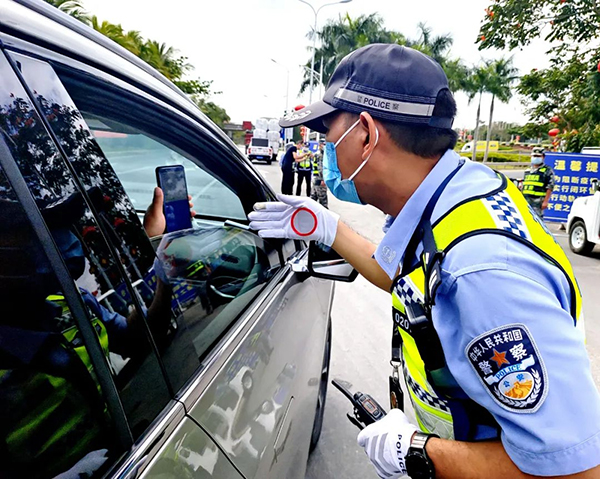 三亞交警通過擺放反光錐、設(shè)置警戒帶、增設(shè)引導(dǎo)標(biāo)志標(biāo)牌等方式,對進(jìn)出車輛進(jìn)行交通管控和交通指揮疏導(dǎo)。同時對過往車輛駕乘人員健康碼、行程碼、核酸檢測證明進(jìn)行查驗、及時為群眾答疑解惑,加強(qiáng)車輛及人員的排查,確保不漏一車、不漏一人。