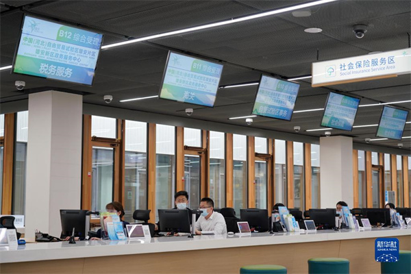 工作人員在雄安新區(qū)政務服務中心工作(2021年3月16日攝)。新華社記者 牟宇 攝