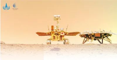 祝融號(hào)火星車(chē)拍攝的“著巡合影”圖。