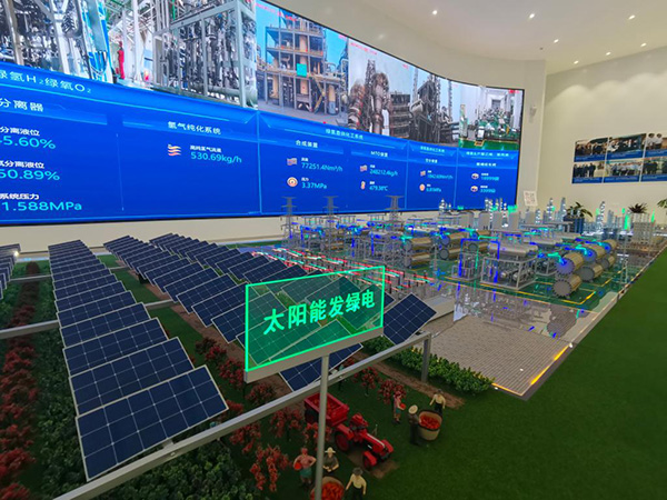寧夏寶豐能源集團太陽能電解水制氫項目沙盤。(新華社記者靳赫攝)