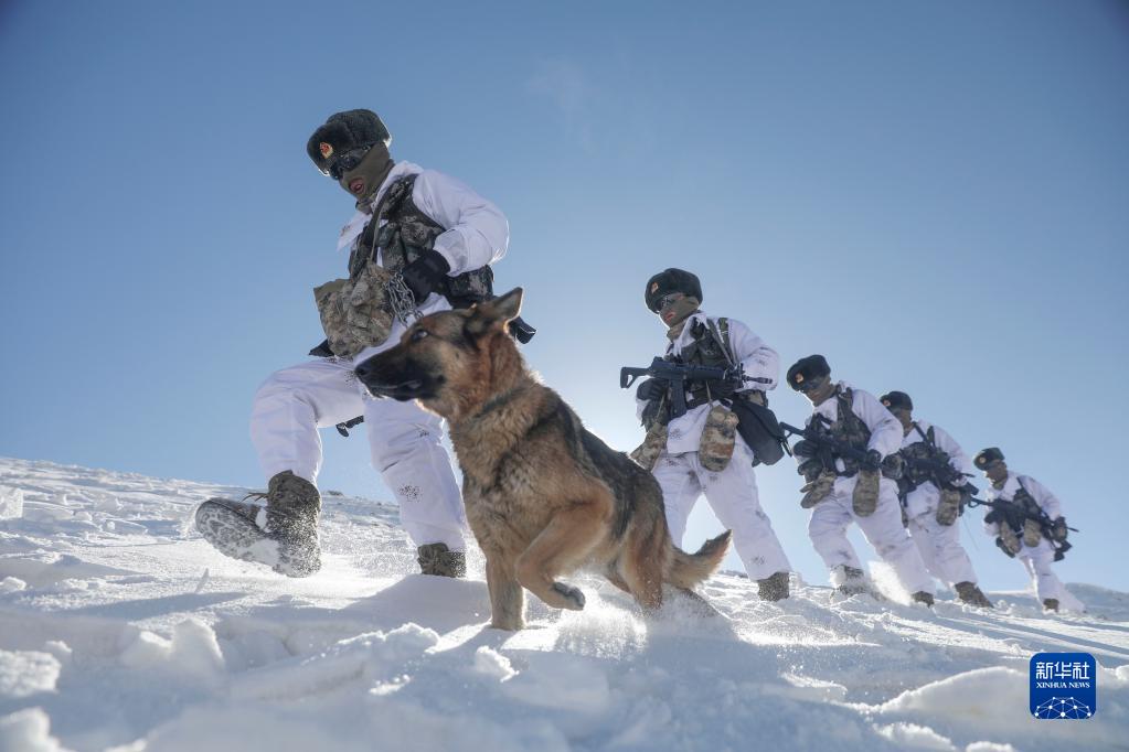 駐守帕米爾高原的新疆喀什軍分區(qū)某邊防團(tuán)托克滿蘇邊防連官兵按計劃對海拔5100米的山口實施例行巡邏(2021年2月11日攝)。新華社發(fā)(姬文志 攝)