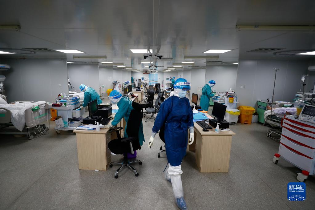 在武漢火神山醫(yī)院,重癥一科醫(yī)護(hù)人員緊張忙碌(2020年2月24日攝)。新華社發(fā)(王皓宇 攝)