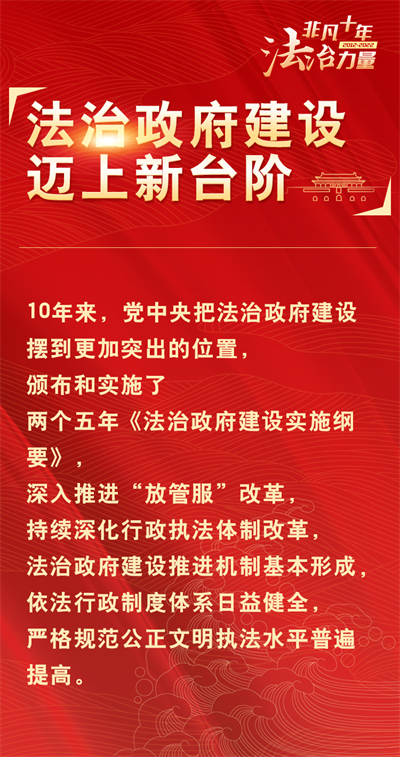 法治網(wǎng)精心策劃制作十期海報(bào),帶您一起領(lǐng)略非凡十年的法治力量!今天為您奉上第五期“法治政府建設(shè)邁上新臺(tái)階”。