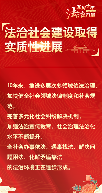 法治網(wǎng)精心策劃制作十期海報,帶您一起領(lǐng)略非凡十年的法治力量!今天為您奉上第七期“法治社會建設(shè)取得實質(zhì)性進(jìn)展”。