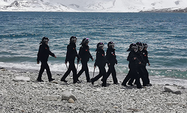 1月31日早晨,沖巴湖執(zhí)勤點(diǎn)外一片冰天雪地,日喀則邊境管理支隊(duì)薩瑪達(dá)邊境派出所民警在沖巴湖旁開展巡邏 ……